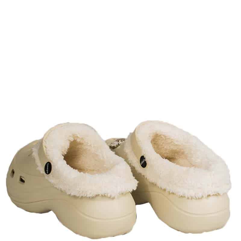 Το ύψος τακουνιού 5 cm προσφέρει διακριτική στυλιστική αναβάθμιση χωρίς να θυσιάζεται η άνεση, ενώ η εσωτερική επένδυση γούνας εξασφαλίζει ζεστασιά και απαλότητα σε κάθε βήμα. Η κανονική φόρμα της παντόφλας επιτρέπει άνετη εφαρμογή για όλη τη μέρα.