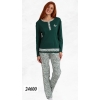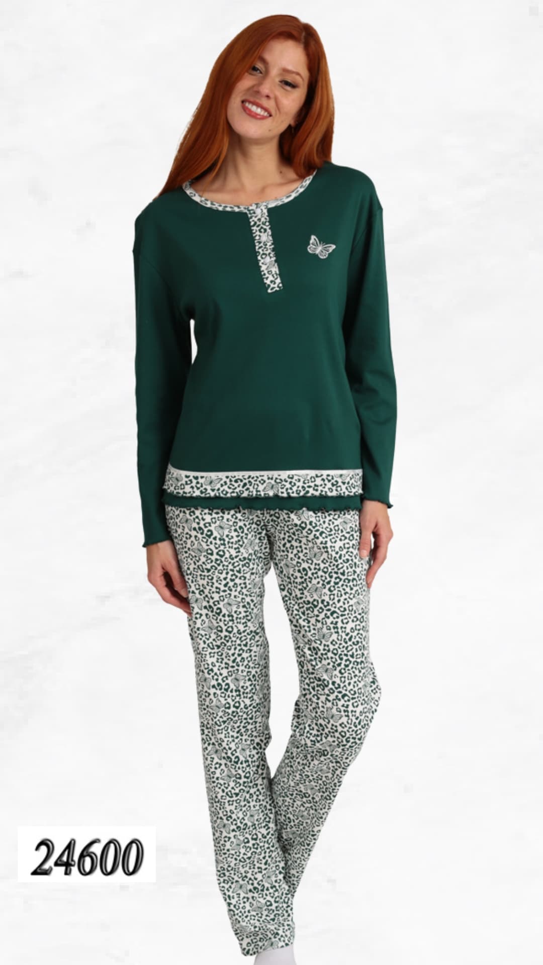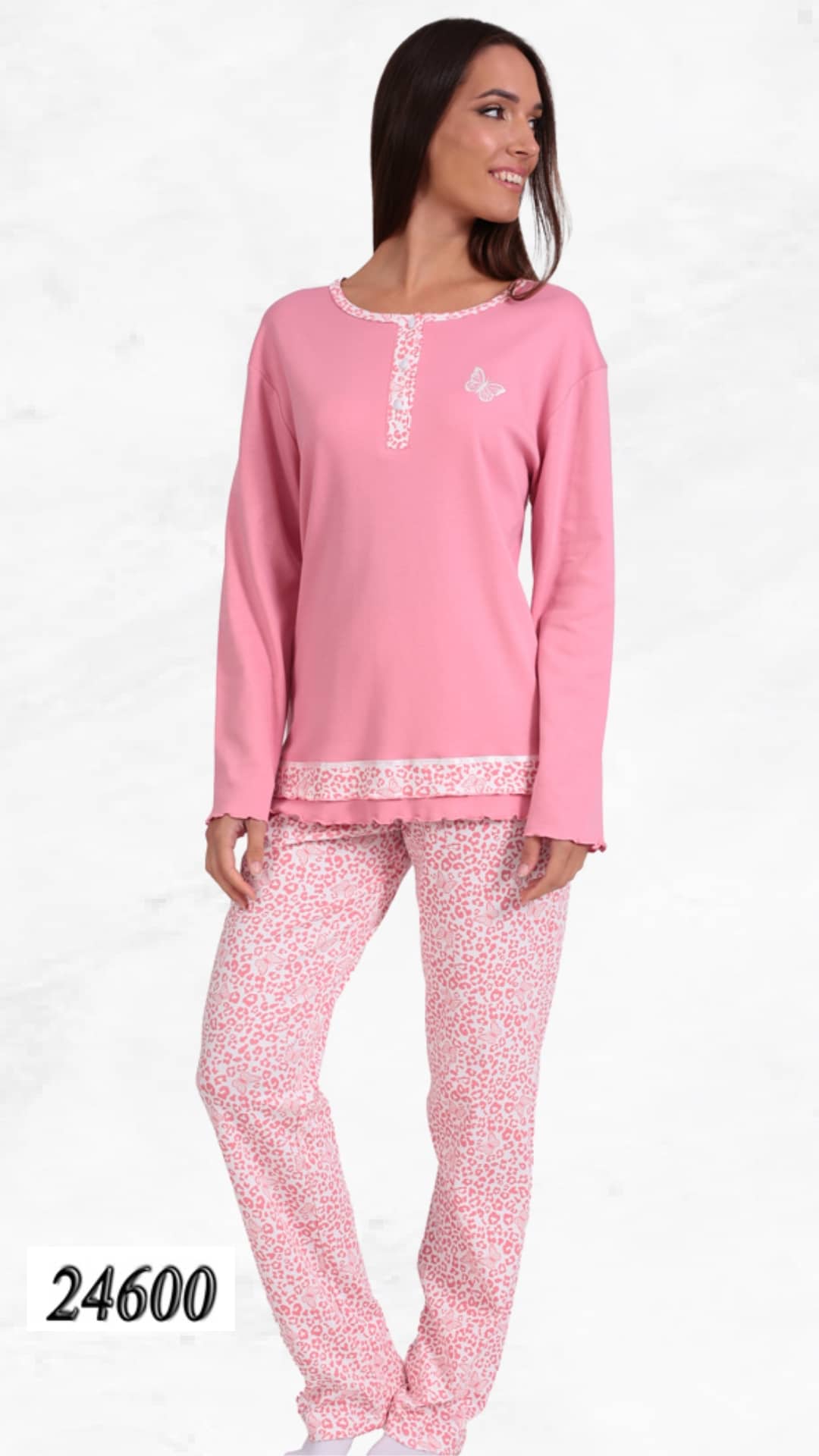 Γυναικεία Πιτζάμα με Λεοπάρ Λεπτομέρειες. Το μπλουζάκι διαθέτει διακριτική διακόσμηση στη λαιμόκοψη και κουμπάκια, προσφέροντας μια κομψή εμφάνιση. Το παντελόνι έχει διακριτικό μοτίβο που προσθέτει μια ξεχωριστή πινελιά. Ιδανική επιλογή για άνεση στο σπίτι και χαλάρωση.