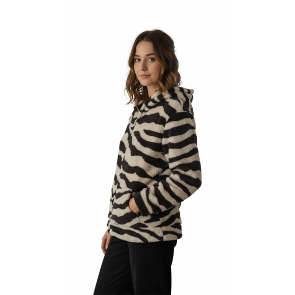 Γυναικεία Ζακέτα-Ρόμπα Ζέβρε με Κουκούλα & Φερμουάρ