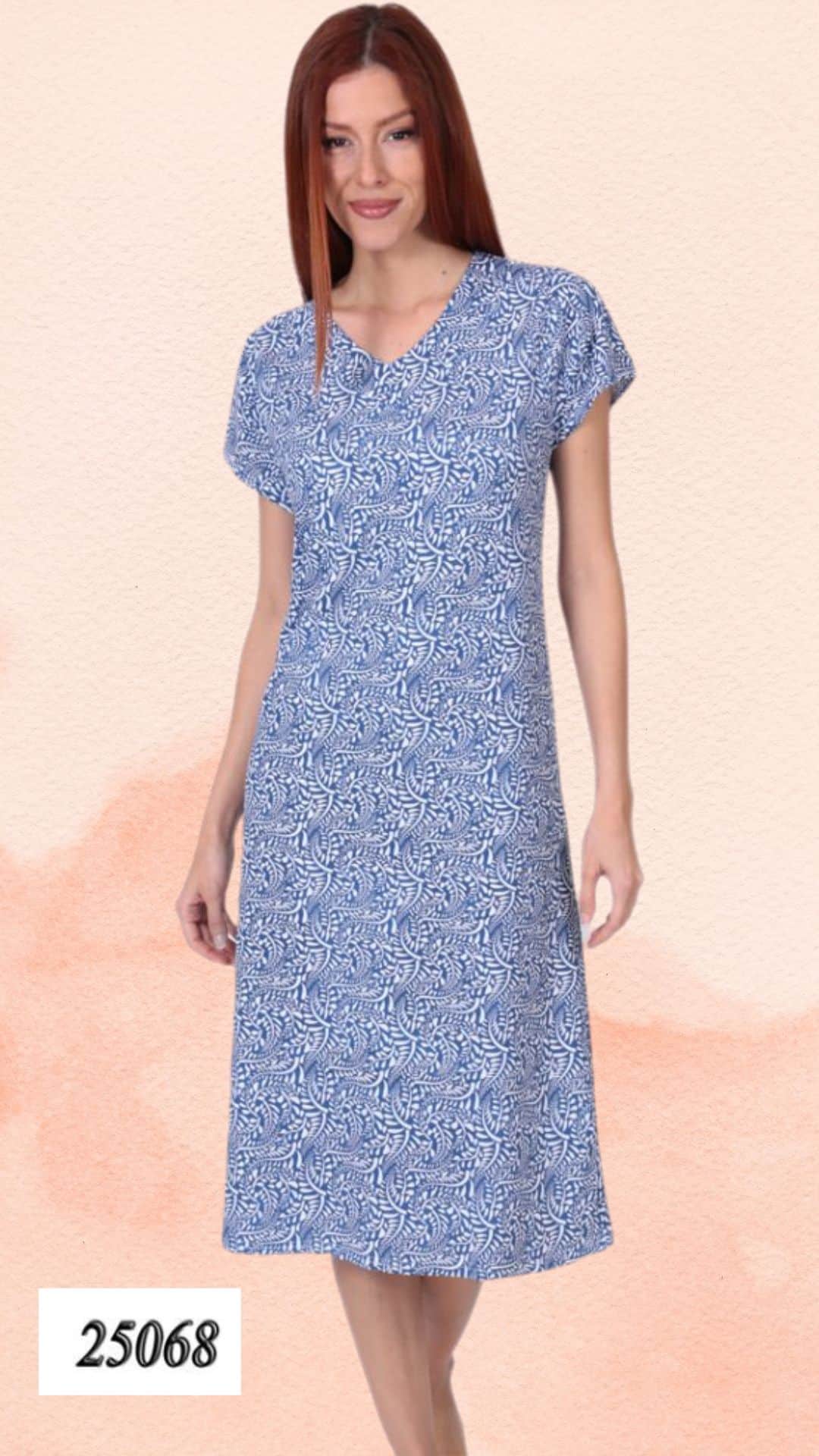 Γυναικείο Νυχτικό Κοντομάνικο Εμπριμέ Lydia Creation, ελληνικής κατασκευής. Από ύφασμα 95% viscose και 5% spandex, για απαλή αίσθηση και απόλυτη άνεση.