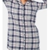 Γυναικεία χειμερινή κοντή νυχτικιά, κατασκευασμένη από 100% βαμβακερό εμπριμέ καρό ύφασμα υψηλής ποιότητας. Διαθέτει κουμπιά και πέτο γιακά, προσδίδοντας ένα στυλ που θυμίζει πουκάμισο, και είναι διακοσμημένη με κοντράστ ρέλια.
