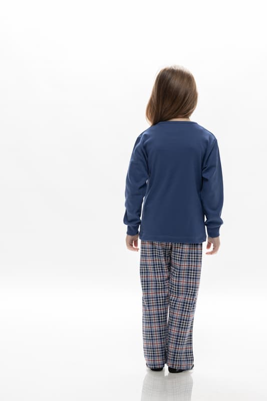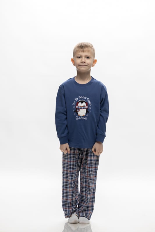 Παιδική πιτζάμα Up To Snow της Galaxy από 100% βαμβάκι, εξασφαλίζοντας άνεση και ζεστασιά. Η μπλούζα διαθέτει στρογγυλή λαιμόκοψη και μπάσκες στα μανίκια για καλύτερη εφαρμογή. Το καρό παντελόνι προσθέτει κομψότητα και στυλ. Κατασκευασμένη στην Ελλάδα με προσοχή στη λεπτομέρεια.