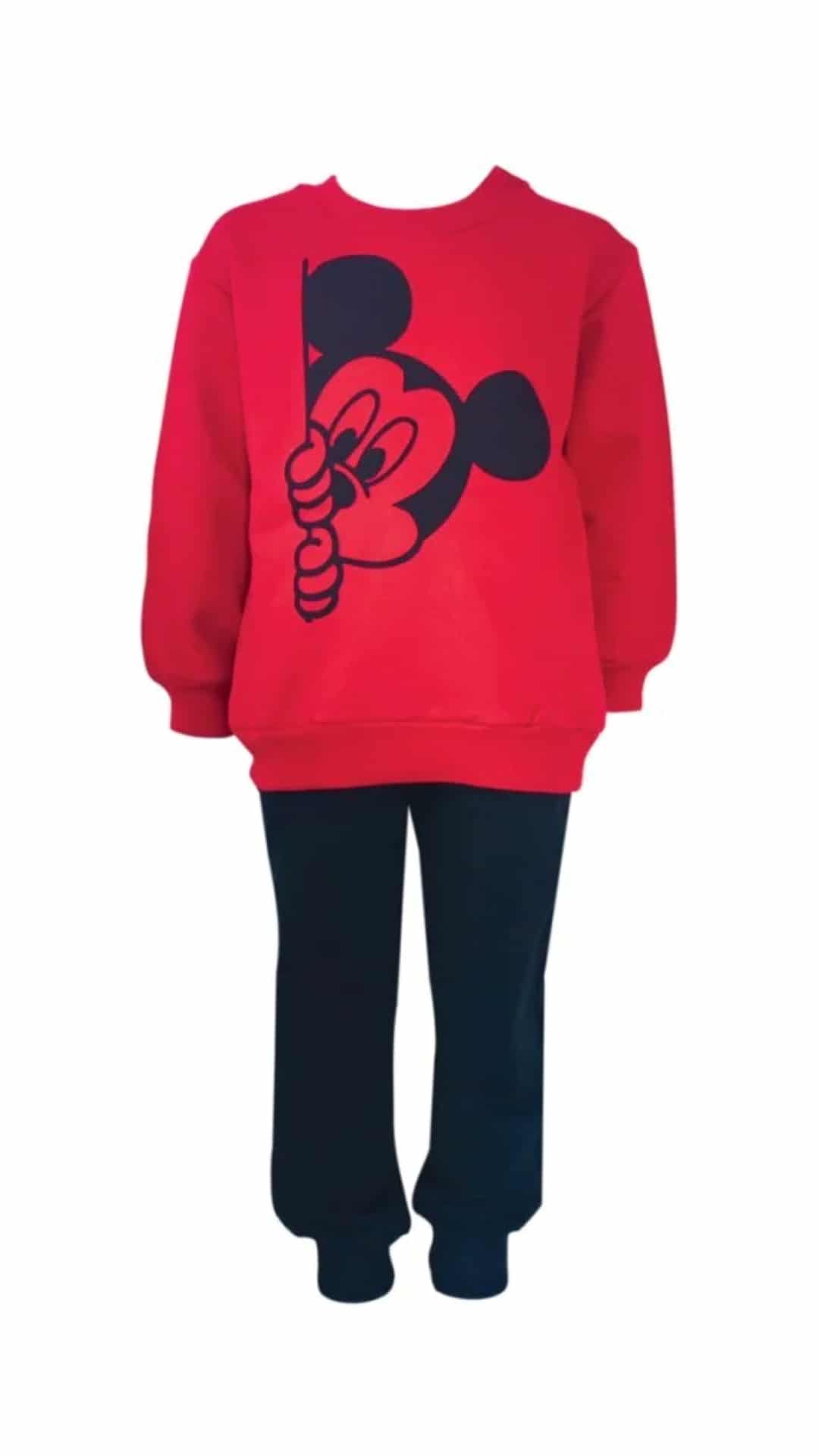 Βαμβακερή παιδική φόρμα Mickey Mouse για αγόρια από την ελληνική Serafino. Άνετη, μοντέρνα και ιδανική για ηλικίες 1-5 ετών, σε ζωηρό κόκκινο χρώμα.