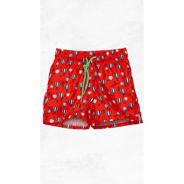 Παιδική Βερμούδα με Αερόστατα Tortue. Η κόκκινη παιδική βερμούδα κολύμβησης της Tortue με χαρούμενο print από αερόστατα είναι ιδανική για καλοκαιρινές περιπέτειες στην παραλία ή την πισίνα. Κατασκευασμένη από 100% polyester για γρήγορο στέγνωμα και άνετη εφαρμογή, προσφέρει άνεση και στυλ σε κάθε εμφάνιση. Ένα απαραίτητο κομμάτι για κάθε παιδική καλοκαιρινή γκαρνταρόμπα.