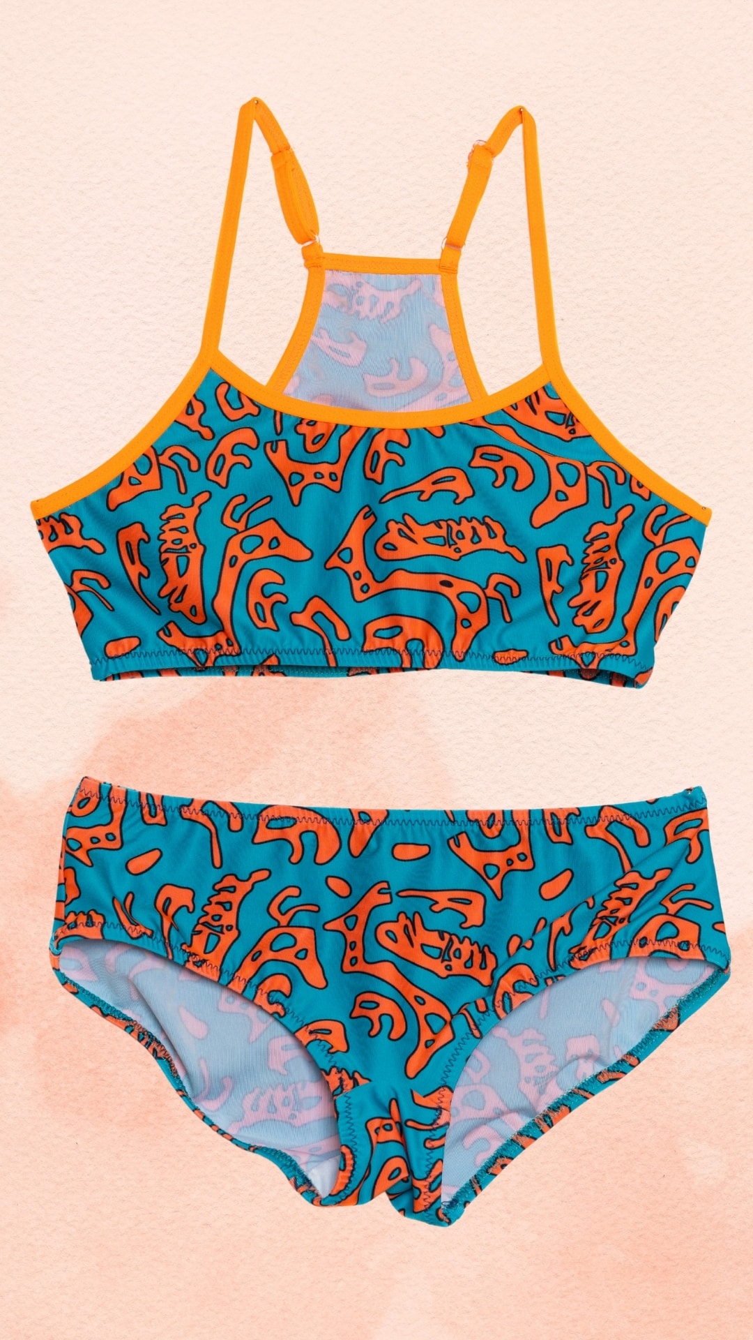 Παιδικό Μπικίνι Bones Surf Tortue. Σε πετρόλ χρώμα και το αγαπημένο all-over print “bones”.