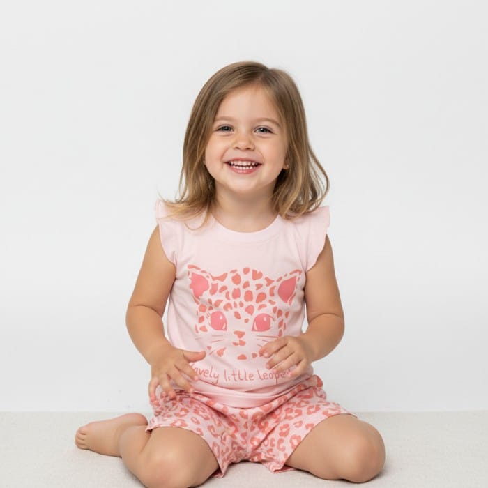Παιδικό Σετ Leopard 100% Βαμβάκι Pretty Baby. Το φορά σαν άνετο ρουχαλάκι για παιχνίδι, βόλτα ή το βάζει το βράδυ σαν πιτζάμα. Το ύφασμα από 100% πενιέ βαμβάκι αφήνει το δέρμα να αναπνέει και προσφέρει δροσιά. Η μπλούζα έχει ελαστική λαιμόκοψη και διακοσμητικό print χωρίς τοξικές ουσίες. Το κοντό παντελονάκι χαρίζει ελευθερία σε κάθε κίνηση. Το σετ αντέχει στο συχνό πλύσιμο και κρατά το σχήμα του.
