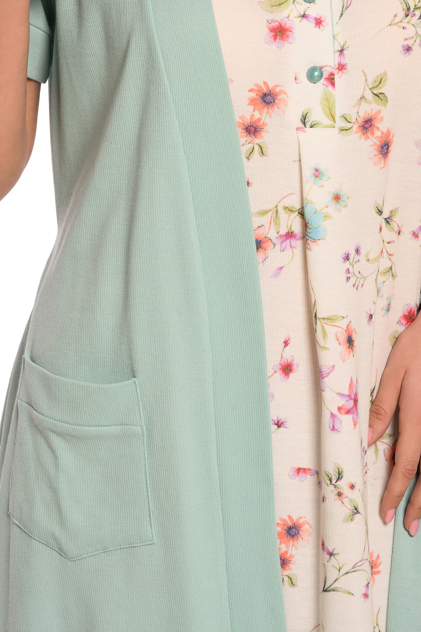 Η μαλακή ριπ ύφανση της ρόμπας εξασφαλίζει άψογη εφαρμογή και αίσθηση απαλότητας στο δέρμα, ενώ το κομψό βεραμάν χρώμα προσθέτει μια δροσερή και μοντέρνα πινελιά στην εμφάνισή σας. Με κοντά μανίκια, τσέπες και άνετη γραμμή, αυτή η ρόμπα είναι τέλεια για να τη φορέσετε πάνω από τις πιτζάμες σας ή ακόμη και μόνη της για ένα χαλαρό look.